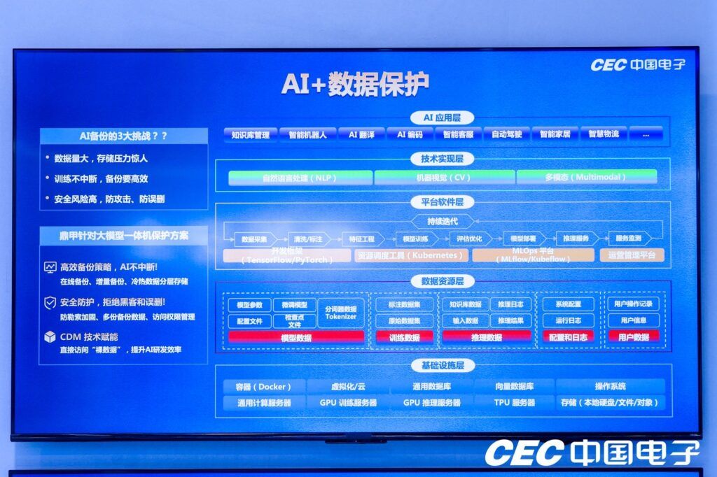 面對大模型一體機的海量數據和高風險挑戰,鼎甲展示了 AI 數據保護方案,具備以下三大優勢: