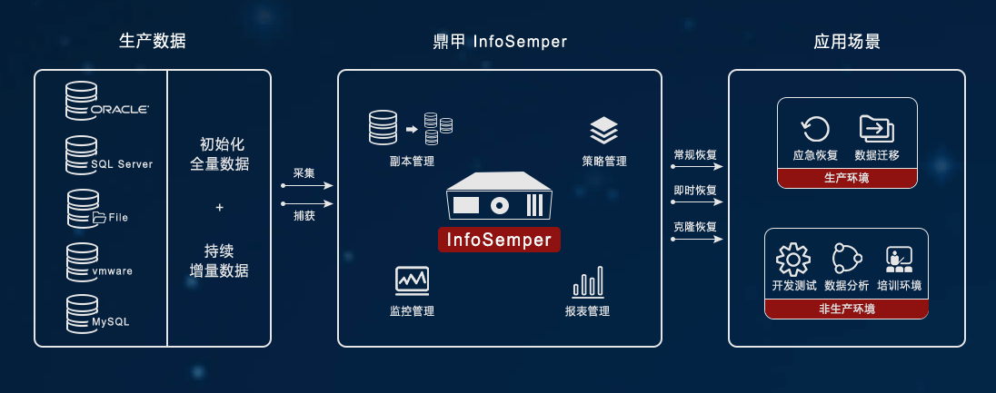 目前,銀行、電信、企業(yè)、大政府等用戶已經(jīng)深刻體會(huì)到數(shù)據(jù)副本的價(jià)值,迫切需要通過(guò)CDM產(chǎn)品推動(dòng)業(yè)務(wù)的快速轉(zhuǎn)型,鼎甲的產(chǎn)品也已經(jīng)有成功的大型項(xiàng)目實(shí)踐案例。企業(yè)結(jié)合鼎甲數(shù)據(jù)保護(hù)產(chǎn)品DBackup和CDM產(chǎn)品InfoSemper,既能全方位地保障數(shù)據(jù)安全,也為數(shù)字化轉(zhuǎn)型帶來(lái)基礎(chǔ)服務(wù)支撐。