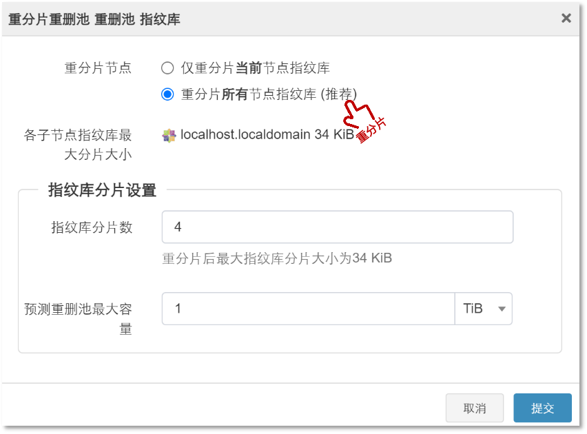 指紋庫重分片指紋庫太大檢索時間變長,導(dǎo)致重刪場景下備份和異地復(fù)制的速度變慢。為平衡指紋庫的負(fù)載,DBackup 已經(jīng)將單個指紋庫拆分為多個分片。然而,隨著業(yè)務(wù)的膨脹,單個分片仍然可能會出現(xiàn)性能瓶頸。新版 DBackup 在原先的基礎(chǔ)上再推出重分片功能,可根據(jù)業(yè)務(wù)數(shù)據(jù)規(guī)模重新調(diào)整分片數(shù)量,讓檢索速度始終保持在較高水平。