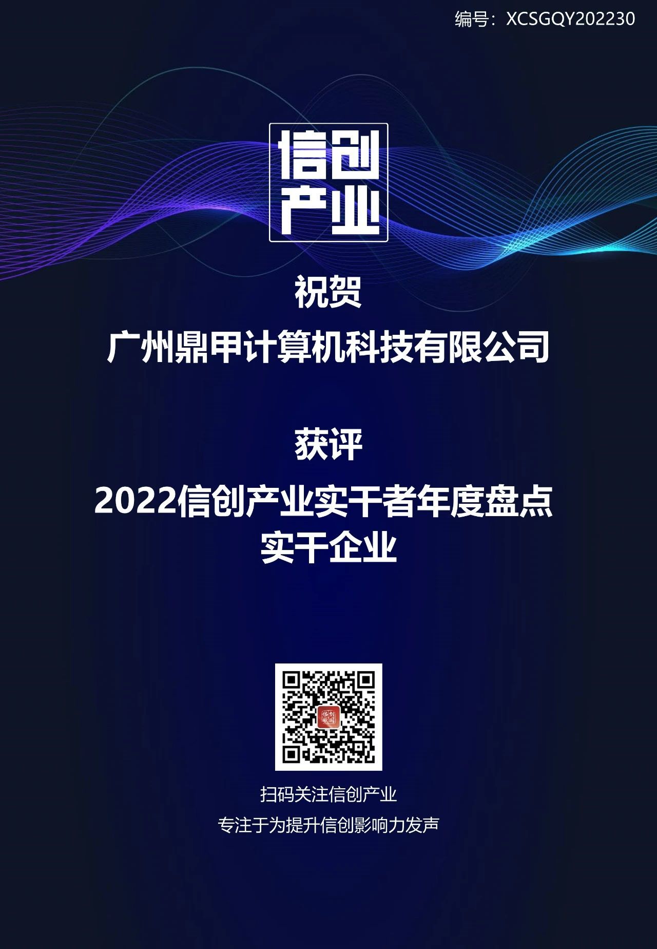 信創喜訊 | 鼎甲獲評2022信創產業實干者,信創領域再突破!