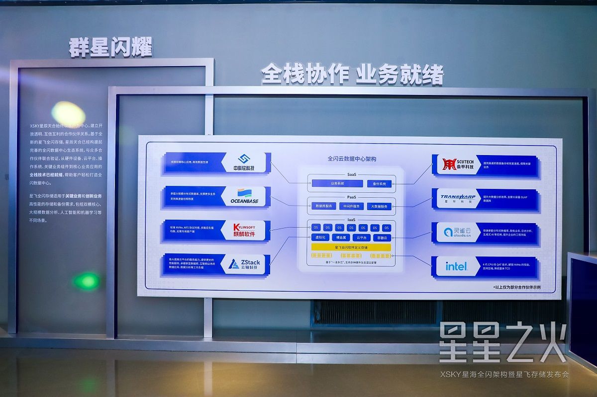 基于全新的星海架構以及星飛全閃存儲,星辰天合已經構建起了一個完善的生態系統,并與鼎甲、英特爾、新華三、麒麟軟件、云軸科技 ZStack 等眾多合作伙伴聯合驗證,從硬件設備、云平臺、操作系統、關鍵業務組件到核心業務應用的全棧技術已經就緒。