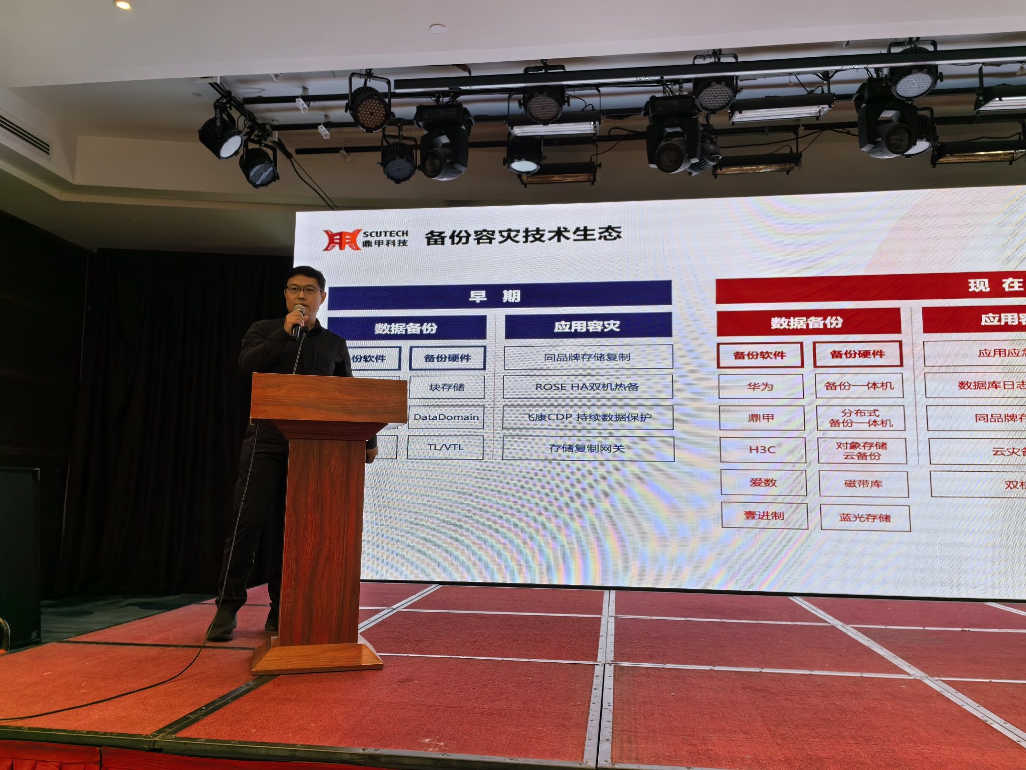 鼎甲北區技術總監姜思亮發表了“信創全棧云時代災備生態變革”的演講。隨著企業數據急速增長以及新應用和服務的不斷涌現,混合云逐漸成為主流?;诖耍讓υ粕蟼浞菽芰M行全面提升,為信創全棧云數據提供更成熟、更易管理、更云化的產品解決方案,助力客戶在云時代實現更高效、更安全的數據保護。