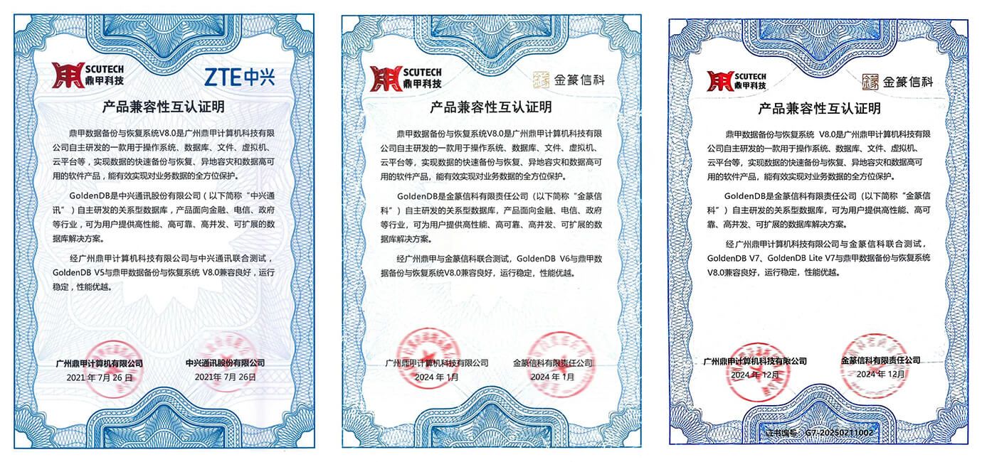 值得一提的是,鼎甲與 GoldenDB 的兼容認證并非首次。在 GoldenDB 的歷史版本(包括V5、V6)中,鼎甲數(shù)據(jù)備份與恢復系統(tǒng)已多次完成兼容性測試,并保持長期穩(wěn)定的技術(shù)適配,這體現(xiàn)了鼎甲在信創(chuàng)數(shù)據(jù)庫生態(tài)建設(shè)中的持續(xù)投入。