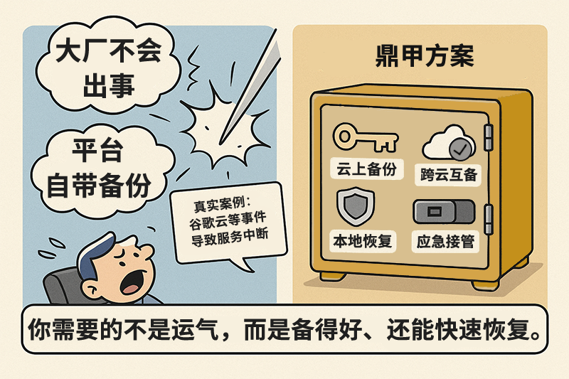 2024年,谷歌云因操作失誤誤刪 UniSuper 養(yǎng)老金基金賬戶,導(dǎo)致 62 萬用戶數(shù)天無法訪問退休賬戶,引發(fā)投訴和信任危機(jī)。部分?jǐn)?shù)據(jù)因無備份永久丟失,造成業(yè)務(wù)中斷。若采用 3-2-1 備份策略,損失本可避免。