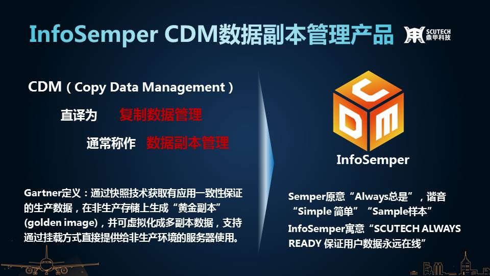 鼎甲發(fā)布了國(guó)內(nèi)首款CDM一體機(jī)InfoSemper CDM,幫助企業(yè)提升數(shù)據(jù)副本管理的效能。歷經(jīng)三年的技術(shù)積累,已在江蘇郵政、南京政務(wù)云成功落地實(shí)施,也已通過(guò)客戶驗(yàn)收,備受好評(píng)。InfoSemper CDM是利用客戶端應(yīng)用資源的專用接口捕獲生產(chǎn)環(huán)境中的文件、數(shù)據(jù)庫(kù)、虛擬機(jī)等數(shù)據(jù),基于快照數(shù)據(jù)建立多副本管理體系,通過(guò)副本掛載實(shí)現(xiàn)數(shù)據(jù)的即時(shí)恢復(fù),既可以支持生產(chǎn)環(huán)境的應(yīng)急使用,又可以支持非生產(chǎn)環(huán)境的開發(fā)、測(cè)試、數(shù)據(jù)分析等使用。
