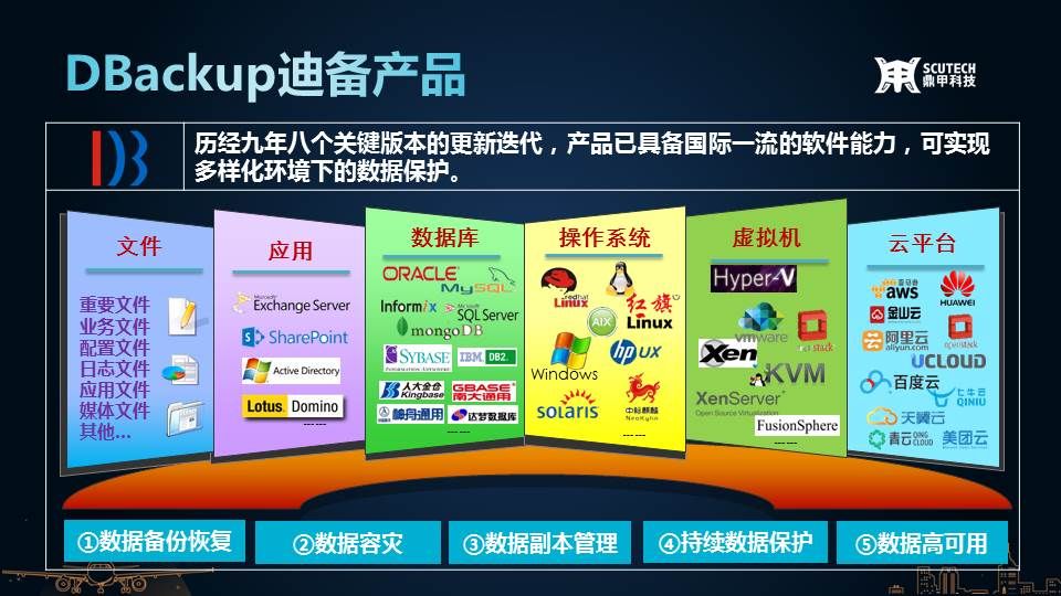鼎甲核心產(chǎn)品DBackup歷經(jīng)三次關(guān)鍵的版本迭代,強(qiáng)化對(duì)關(guān)鍵業(yè)務(wù)數(shù)據(jù)庫(kù)和云端數(shù)據(jù)的保護(hù),推出大型機(jī)下的數(shù)據(jù)備份恢復(fù)、多租戶、D2C、D2D2C等功能模塊,并加強(qiáng)對(duì)應(yīng)用與設(shè)備的適配。