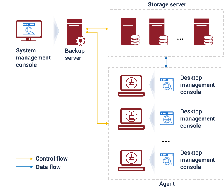 Desktop management console: Provides a simplified and user-friendly interface for desktop users to perform backup and restore operations.